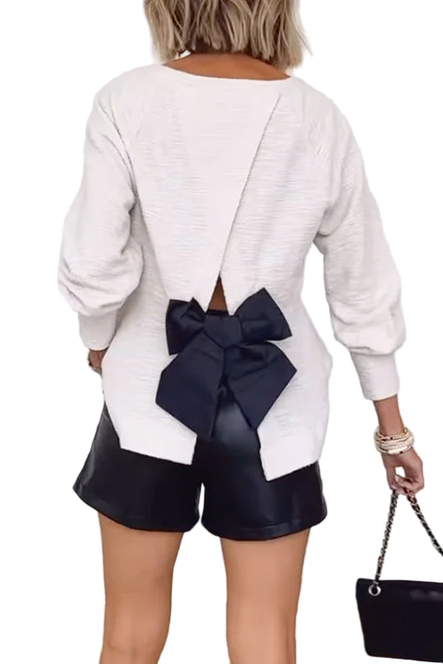 Voel je stijlvol en zelfverzekerd in onze top met lange mouwen en een unieke strik op de rug. Deze top is perfect voor elke gelegenheid en biedt een combinatie van comfort en een opvallend ontwerp.