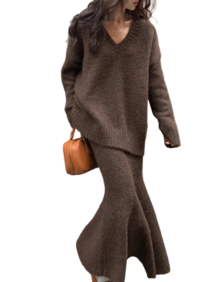 Dames Twee-delige Set Gebreide Trui en Maxirok