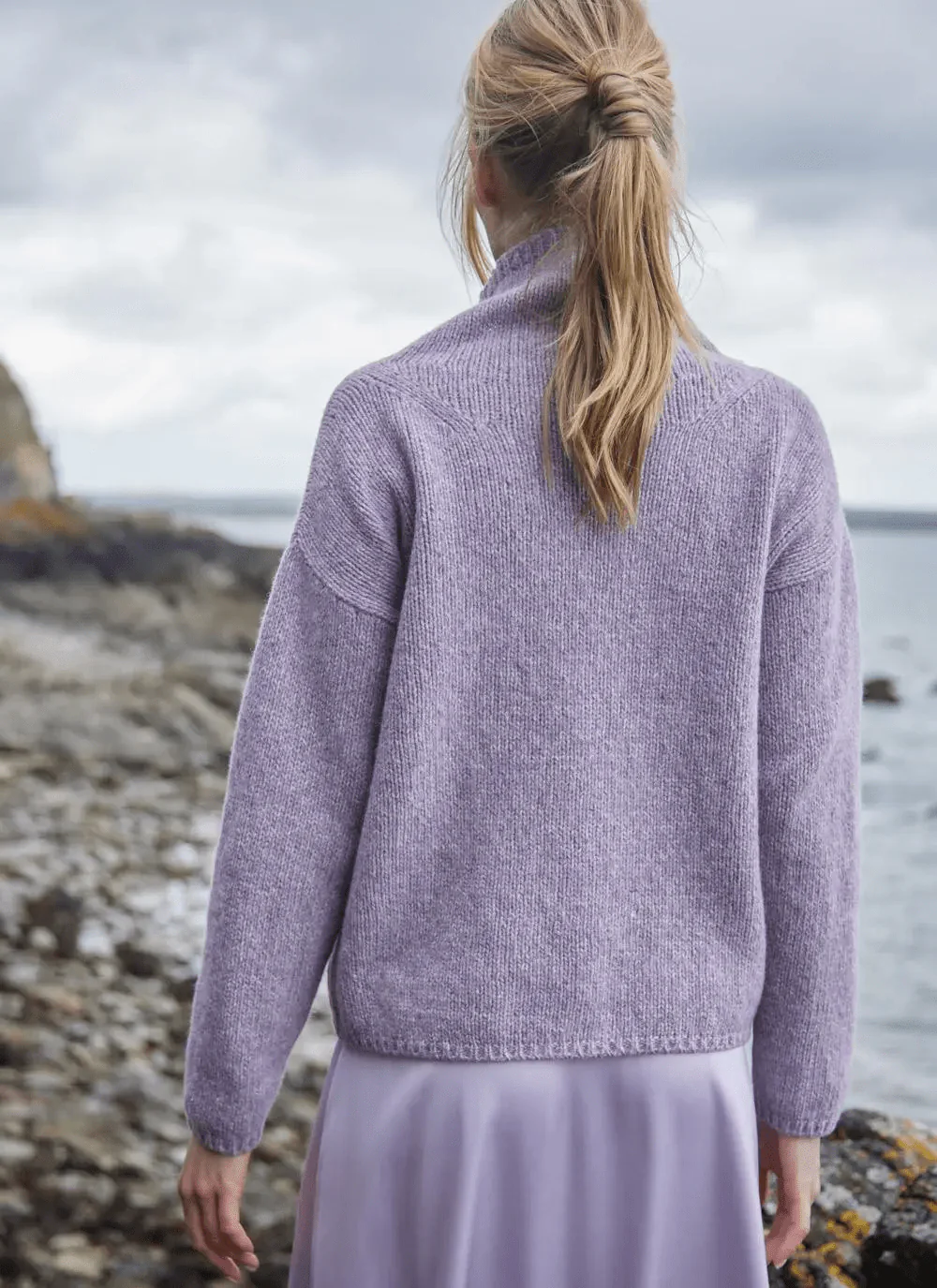 Deze eigentijdse trui is gebreid in Donegal door Fisherman Out of Ireland en heeft een stijlvolle hoge trechterhals gecombineerd met een slouchy silhouet. Het is gemaakt van mulseervrije wol, heeft een all-over vlekafwerking en voelt ongelooflijk zacht aan. Een heerlijk tijdloos stuk Iers breigoed.