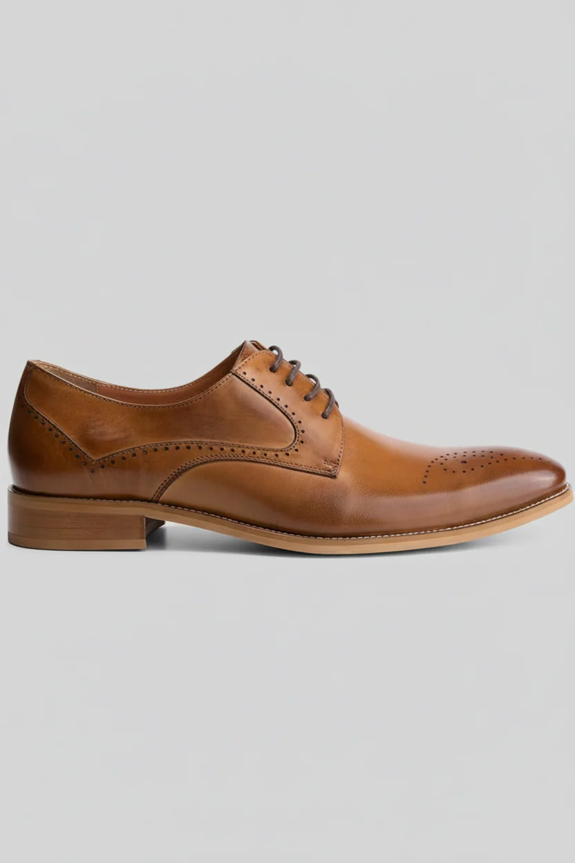 Perforaties in cognac leer, ademend comfort en zool.