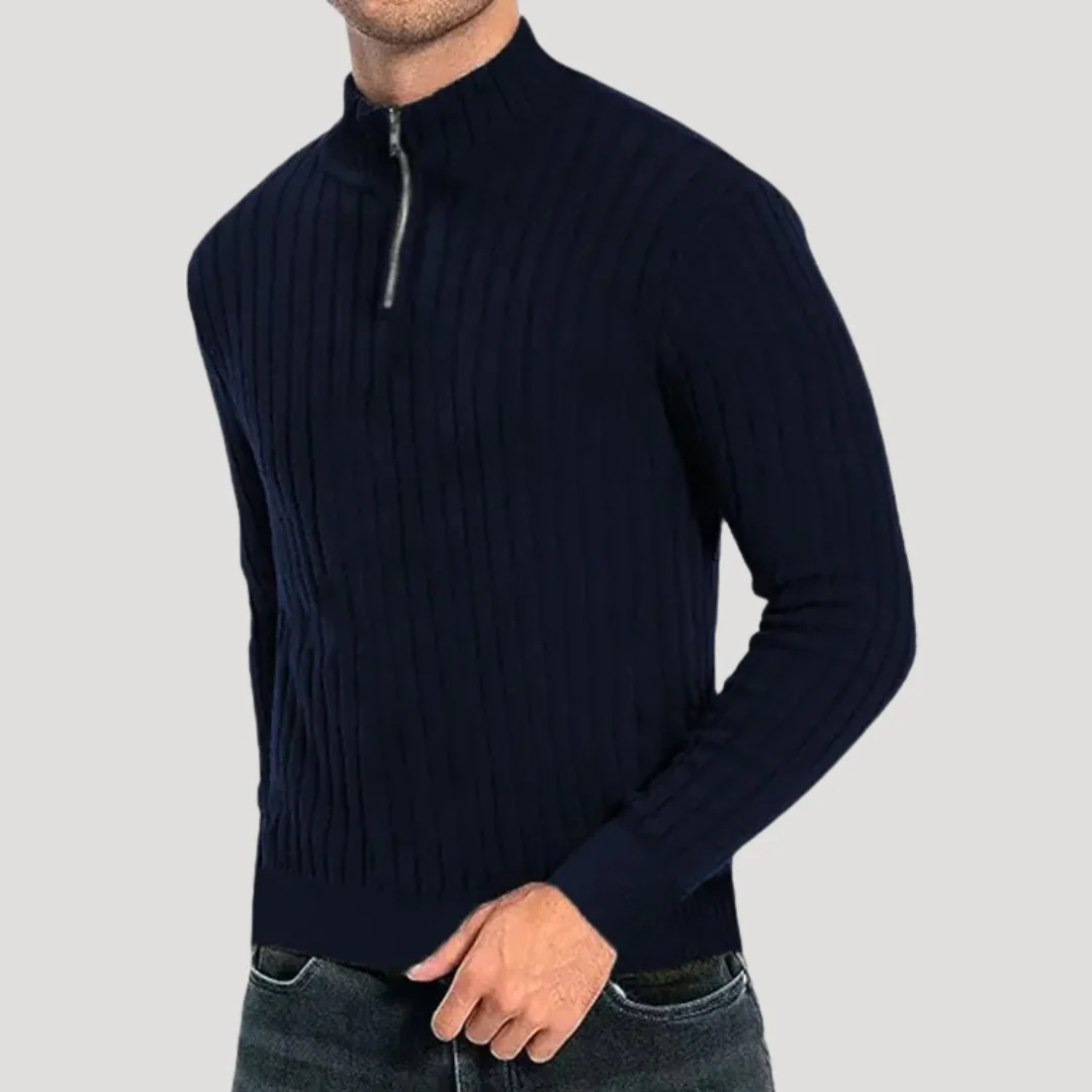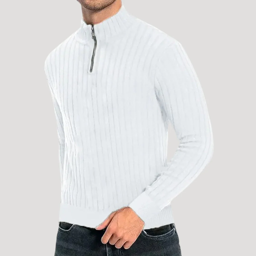 Met een geribbelde textuur en een praktische kwart rits, is deze trui eenvoudig te stylen voor zowel ontspannen weekenden als slimme casual dagen. Een veelzijdige aanvulling op elke garderobe.