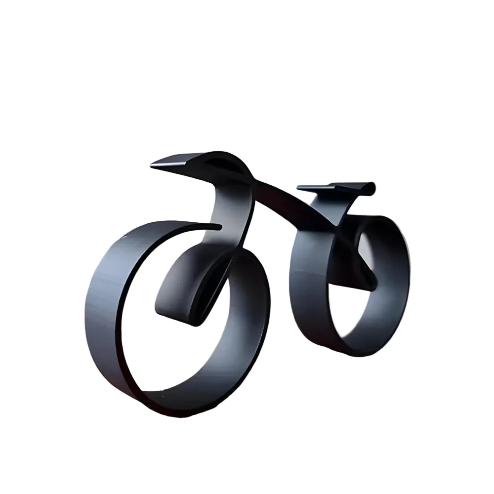 Dit abstracte fietssculptuur voegt een dynamisch gevoel van beweging en persoonlijkheid toe aan uw interieur. Het is een perfect accent dat elke ruimte transformeert in een verfijnd middelpunt.