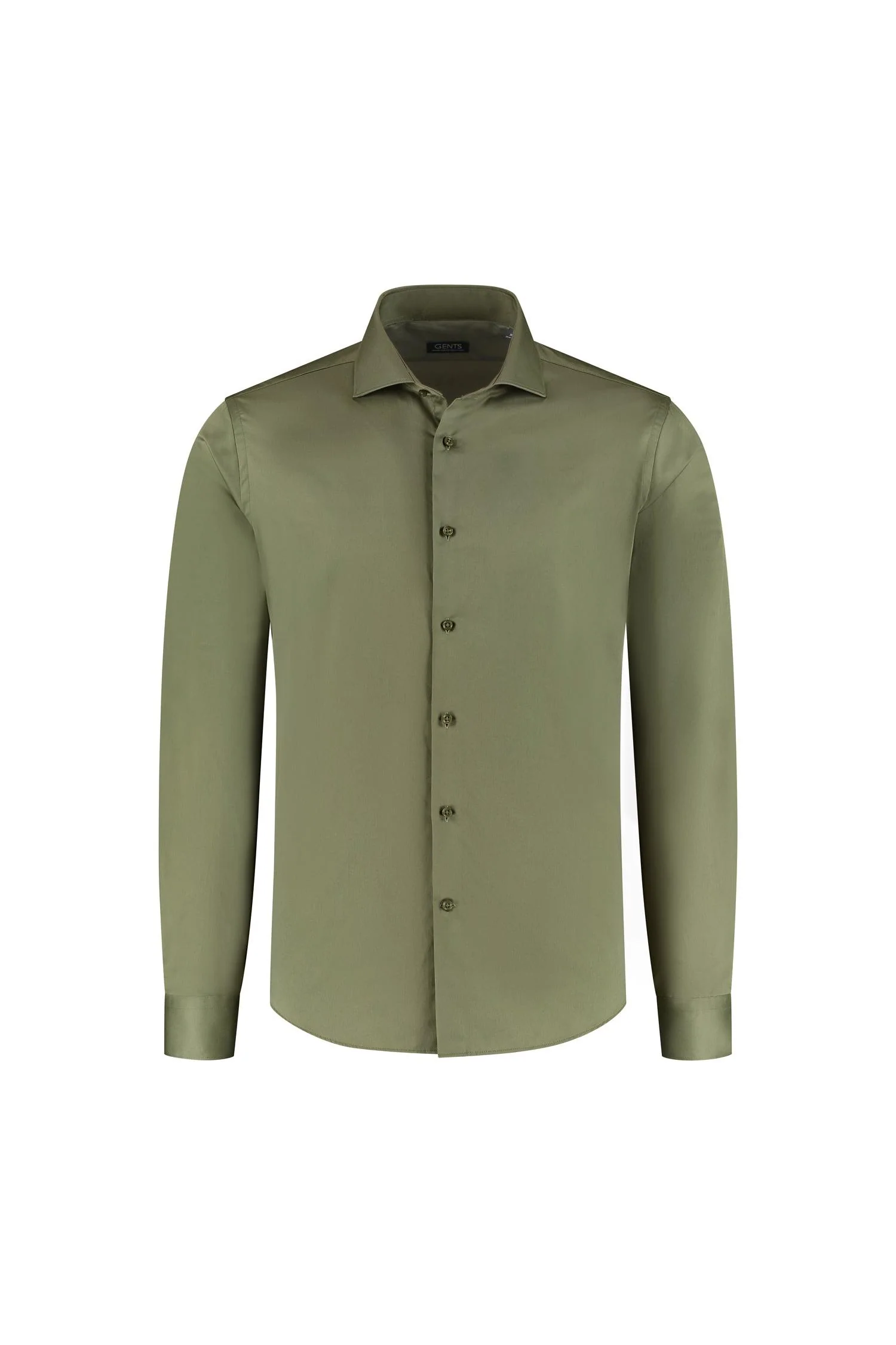 Katoenen overhemd in olijfgroen met satijnbinding, subtiele glans.