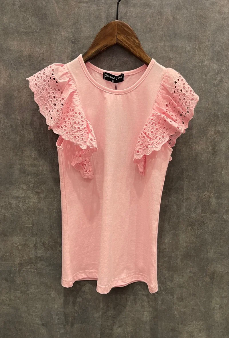 Leuk roze t-shirtje met ruffle mouwtjes